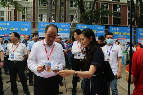 在活动开始前,福建省委常委、秘书长、福建省副省长郑新聪来到省气象局相关展台参观,聆听了气象科普志愿者对气象科普读物、气象探测设备模型、预警信息发布设备等介绍,并给予了肯定。