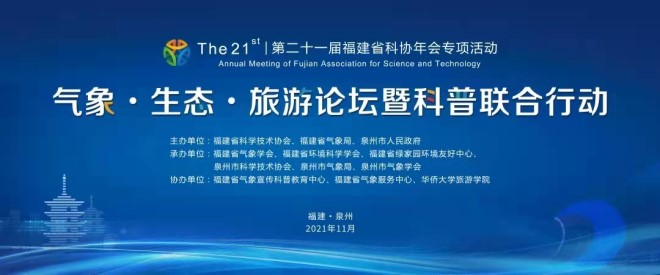 据了解,此次活动作为福建省科协年会专项活动之一,由福建省科学技术协会、福建省气象局、泉州市人民政府联合主办,由福建省气象学会、福建省环境科学学会、福建省绿家园环境友好中心、泉州市科学技术协会、泉州市气象局、泉州市气象学会承办,由福建省气象宣传科普教育中心、福建省气象服务中心、华侨大学旅游学院协办。活动以“线上+线下”方式,围绕“百年再出发、绿色新征程,气象?生态赋能旅游经济”的主题,组织专家开展跨界行业联动和科技科普服务行动,旨在深化旅游气象、生态气象的科技内涵,助力绿色经济、旅游经济发展,助力提高人民群众生活品质、科学素养。