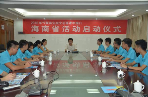 7月19日, 2016年“气象防灾减灾宣传志愿者中国行”海南省活动在海口市正式启动,海南省气象局副局长辛吉武出席启动仪式并讲话。启动仪式结束后,成都信息工程学院气象类专业的暑假返琼大学生志愿者,将在海南省气象学会工作人员的陪伴下,奔赴儋州、昌江、澄迈等市县,开展为期3天的气象防灾减灾气象科普宣传活动。
