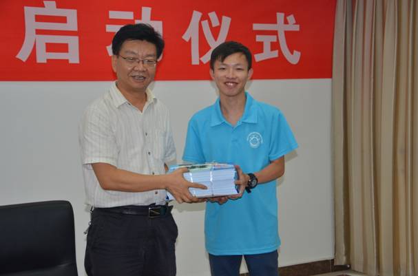 启动仪式上,辛吉武指出,“气象防灾减灾宣传志愿者中国行活动”是一项非常有意义的活动,使同学们在丰富暑期生活的同时,传递气象科普和防灾减灾知识,是大学课内知识学习的有效延伸。辛吉武希望大学生志愿者,通过学习、了解海南天气气候特点、主要的气象灾害以及防灾减灾防御措施,增强气象事业的使命感和自豪感,在家乡海南,以专业所学服务社会,让民众更多地了解气象科普知识,提高老百姓防灾减灾的意识。同时,辛吉武希望志愿者在活动期间尊重地方风俗、遵守纪律服从指挥、注意自身安全。最后,辛吉武预祝大家顺顺利利、平平安安完成科普宣传工作,并向志愿者赠送《如何应对海南气象灾害》、《海南省气象防灾减灾手册》、《雷电灾害防御手册》、《海南省人工影响天气》等科普资料5000份,用于宣传活动。