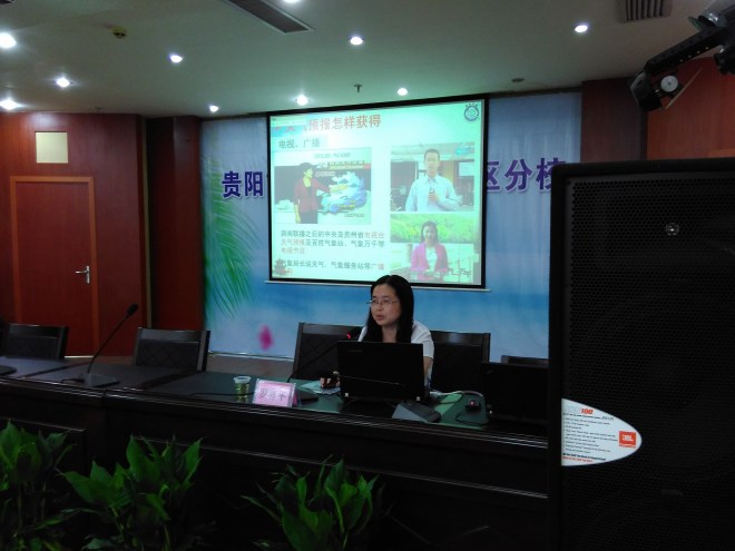 2015年7月17日,贵州省气象学会联合贵阳市气象局组织气象专家来到贵阳市新华社区服务中心,为社区居民带来了一场题为《如何收看天气预报及气象灾害预警信号解读》的气象科普知识讲座,并向社区服务中心赠送了气象科普资料。讲座开始前,贵州省气象学会谢海瑛秘书长、贵阳市气象局帅世殊副局长与社区领导就下一步加强社区气象科普宣传、建设社区气象站等事项进行了交流。