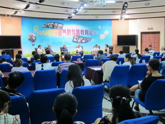 在金秋送爽的好时节,8月23至24日,由中国气象学会主办的2016年校园气象科普教育论坛在京落下帷幕。本次论坛的主题为“校园气象科普教育的机遇与挑战”。这是继2012年在深圳举办“两岸四地校园气象科普教育论坛”后,时隔四年再次举办的校园气象科普教育论坛,旨在推动全国校园气象科普教育健康发展。中国气象局党组副书记、副局长,中国气象学会气象科普工作委员会主任委员许小峰出席论坛并致辞,他提出要加强气象与中小学校的联合,实现气象部门与学校、学校与学校之间的有机互动;进一步发挥社会力量和资源在推动气象科普教育中的作用。中国工程院院士陈联寿,中国科协青少年科技中心、北京青少年科技中心相关负责人,教育界的专家及全国各地的中小学校长、科技老师,气象科技工作者等共计130余名代表参加本次论坛。
