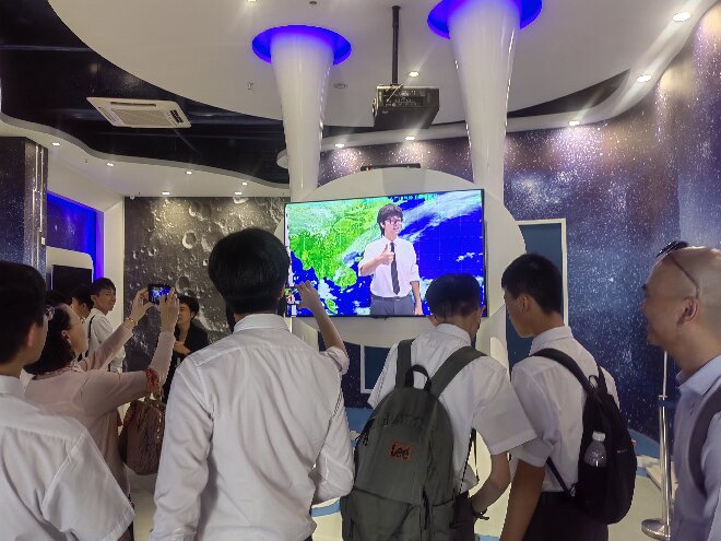 研学团在卫星站高工柯凌老师的带领下,先后参观了卫星接收天线群,风云一号A星样星、风云卫星博物馆和航天卫星科普互动体验馆等。通过参观体验,让香港学子了解气象卫星的工作原理、应用领域,同时还让香港学子对我国气象卫星从无到有,从试验型到业务型,从跟跑到并跑到部分领跑的跨越有了深刻的认识。时至今日,风云卫星已经走到世界先进行列,正在以构建人类命运共同体的责任担当,为气象全球监测、全球预报、全球服务贡献中国智慧和力量,通过此次研学活动增强了香港学子对祖国科技以及未来发展的信心和自豪感!