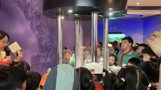 “气候的形成是一个比较复杂的过程,人类活动地形地貌都会影响到气候的形成,今天大家来认识一下大气圈。同学们,你们知道大气圈分为几层吗?”……伴随讲解员娓娓道来,同学们在生动的模拟气象场景里,了解气象科普知识,通过一个个互动游戏,探索气象奥秘,感受科学魅力。