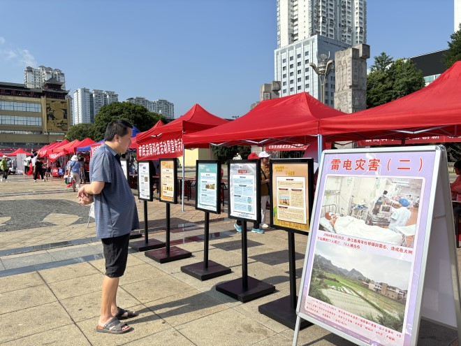 5月25日黔东南州气象局、凯里市气象局等多部门在万博广场联合开展以“弘扬科学家精神,激发全社会创新活力”为主题的科技活动周宣传活动。