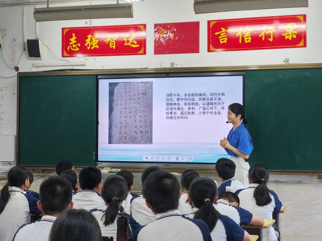 本次活动将九日山世遗文化与气象科学知识相结合,采用科普讲解、现场体验、有奖问答等寓教于乐的形式,将“世遗+气象”研学课“搬”进中学课堂。市气象局科普志愿者与九日山文博讲解员轮番上阵,通过讲解丰富的历史资料、生动的人文故事、有趣的科普漫画,展示可视化科普测风仪器,设置有奖问答环节等丰富的形式,让同学们更加直观地了解九日山的文化内涵和历史价值,挖掘九日山祈风石刻文化背后的气象密码,同时近距离感受气象观测的奥秘,增强青少年气象防灾减灾意识,培养气象科学素养。