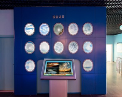 室内展区可以包括:著名气象专家和学者展板、气象仪器模型、气象概览、气象现代化建设、气象防灾减灾、气象知识、VR、AR等互动体验区、气象知识抢答台等展览内容。示例如下: